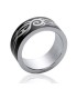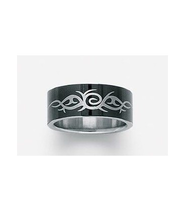 Bague homme acier alliance ruthénium noir,anneau plat motif en incrustation inspiration tribal.