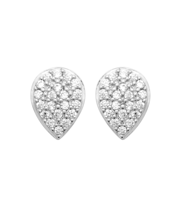 Belles boucles d'oreilles argent massif goute de zirconium blanc micro-serti, fermoir poussette.
